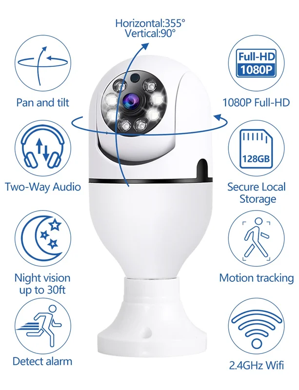 نسل جدیدی از دوربین های امنیتی لامپی که از طریق وای فای کار میکنند و با متصل کردن ان به وای فای از هرجایی میتوانید به وسیله اینترنت به دوربین دسترسی داشته باشید. در ادامه با چند ویژگی دوربین وای لامپی آشنا میشویم: ۱-وضوح HD در شب: این دوربین با فناوری دید در شب و به دلیل داشتن نور های led، حتی در محیط هایی با نور کم هم به شما تصویری با کیفیت میدهد. ۲-صدای دو طرفه: این دوربین از اینترکام صوتی دو طرفه پشتیبانی میکند، یعنی میتوانید براحتی در نرم افزار آن با گوشی موبایل با افراد نزدیک دوربین صحبت کنید. ۳-تشخیص حرکت: شما میتوانید این دوربین را طوری تنظیم کنید که اگر این دوربین جسم متحرکی را دید تشخیص دهد و مانند یک زنگ هشدار عمل کند. ۴-طراحی دو سر و چرخشی: طراحی این دوربین به شما این اجازه را میدهد که با کم ترین صدای ممکن بالا،پایین،راست و چپ محدوده دوربین را دید بزنید و تا ۳۶۰ درجه افقی،۹۰ درجه عمودی میتوانید از طریق گوشی موبایل از راه دور دوربین را بچرخانید. ۵-پشتیبانی از کارت حافظه SD و ذخیره فیلم و عکس: این دوربین از کارت حافظه( تا ۱۲۸گیگ) پشتیبانی میکند و شما میتوانید در نرم افزار موبایلی دوربین عکس و فیلم هایی که تهیه میکنید را به راحتی و با بهترین کیفیت ممکن ذخیره کنید.