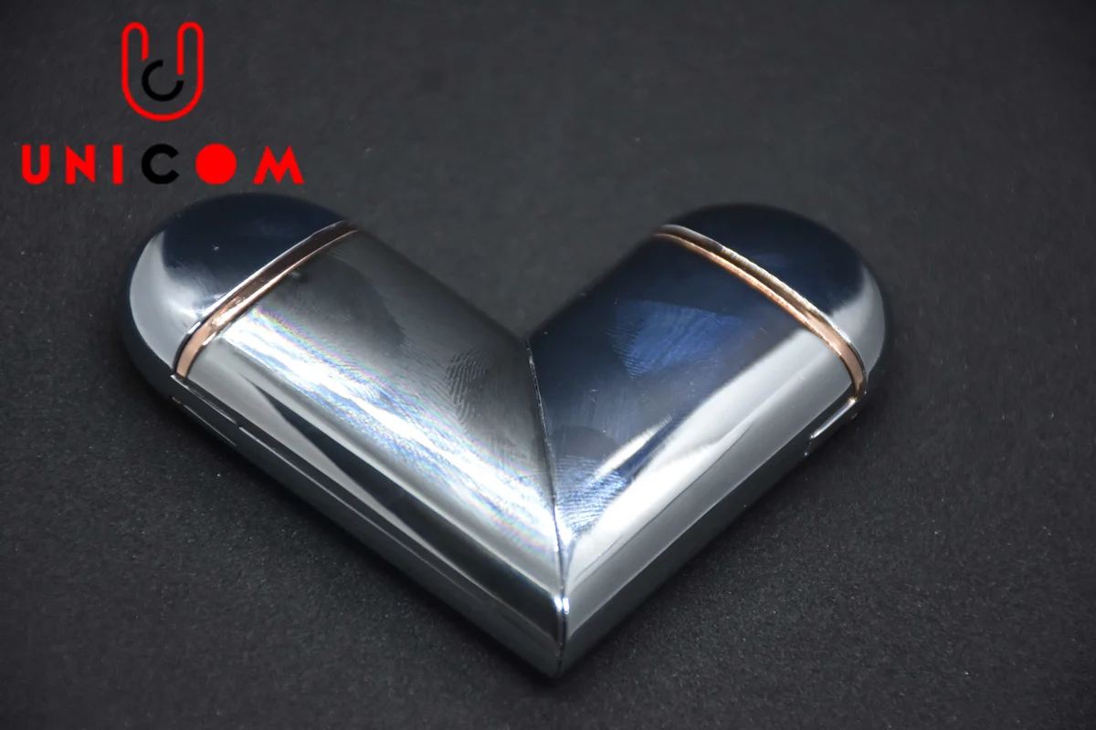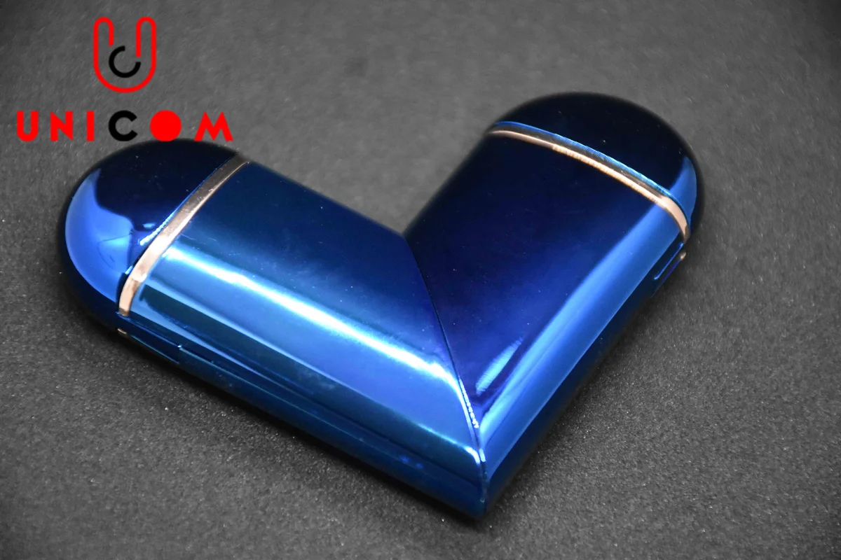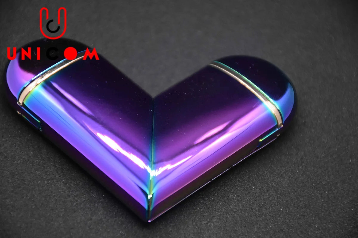 این فندک فانتزی قابلیت چرخش دادن را دارد که به دو حالت ظاهری قلب و میله ای میتوان آن را تغییر داد، یکی از ویژگی های جذاب این فندک سنسور لمسی آن است که با برداشتن سری تاشو شعله المنتی فندک چراغ های LED که روی بدنهی آن تعبیه شده نیز روشن میشود که با لمس بر روی چراغ اثر انگشت شعله المنتی روشن می شود و در سوی دیگر فندک چراغ با طرح قلب و متن I LOVE U بکار گرفته شده است.سوخت آن از برق است و شارژ مجدد آن به وسیله کابل USB که به همراه دارد انجام میشود.
