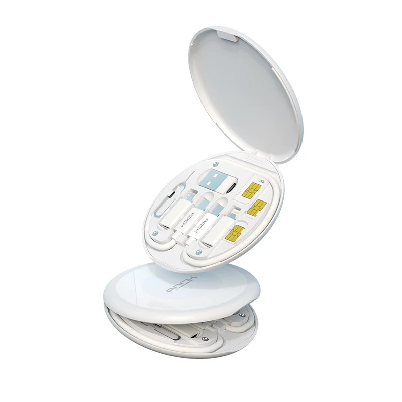 کیت کابل چندکاره راک Storage Bracket Set مدل RCB0820 محصولی بسیار کاربردی است که دارای کابل شارژ سریع ۶۰ واتی Type-C به همراه رابط اپل(آیفون)، رابط اندروید و پین یا همان سوزن اجکتور کارت است که میتوانید برای جلوگیری از گم شدن سیمکارت در آن ذخیره کنید. همچنین این جعبه قابل حمل آسان و مناسب برای مسافرت است و سرعت انتقال اطلاعات آن بسیار سریع بوده که میتوان به راحتی پورت مورد نیازتون رو برای انتقال داده و یا شارژ کردن موبایل تعویض کنید. این کیت چند منظوره برای ماشین،مسافرت،محل کار،خانه،فضای باز و... مناسب است.