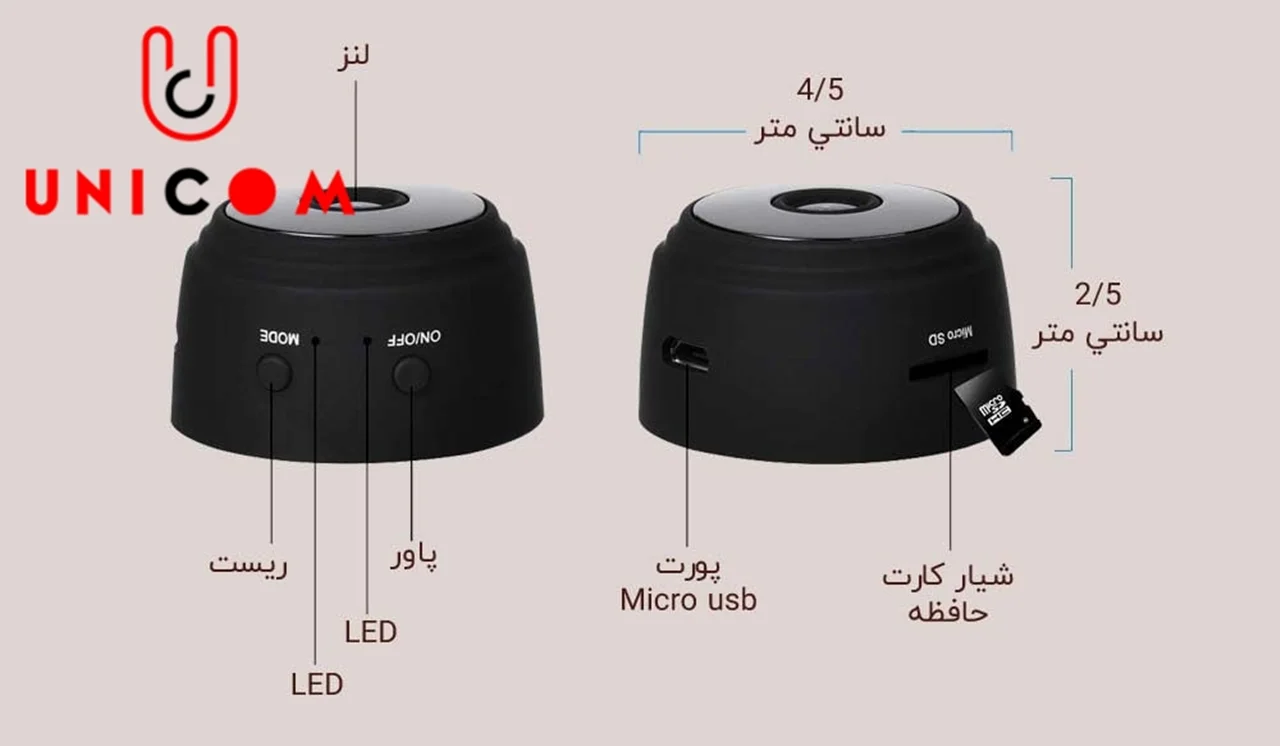 طراحی مغناطیسی، آهنربای قدرتمند داخلی، قابل جذب روی آهن، نصب آسان و قرار دادن در هر گوشه ای،مشاهده از راه دور با برنامه little star، مشاهده از راه دور WIFI، فیلمبرداریفاصله دوربین تشخیص حرکت: 6 متر در یک خط مستقیمپشتیبانی micro sd تا ظرفیت 64gدارای پایه چرخشی 360 درجه افقی و 100 درجه عمودی