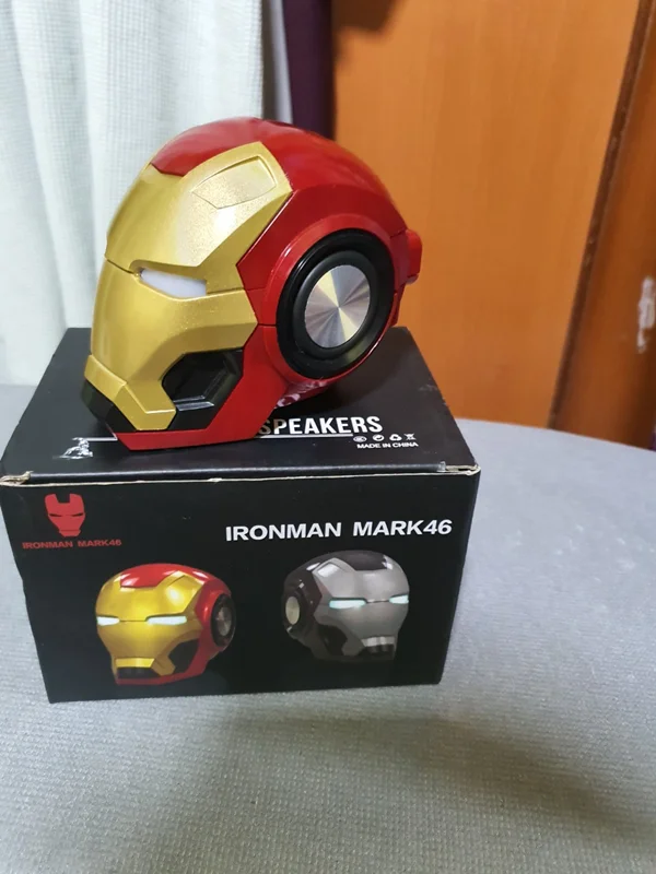 اسپیکری با طراحی جذاب مرد آهنی دارای چراغ led قابل اتصال از طریق بلوتوث،Aux و پشتیبانی از کارت TF،رادیوFM. منبع انرژی این محصول یک باتری ۱۲۰۰میلی آمپری بوده که ۴ تا ۶ ساعت قابل پخش موسیقی میباشد. مجهز به کلیدهای پخش و استپ موسیقی،تنظیم ولوم،خاموش و روشن اسپیکر میباشد.